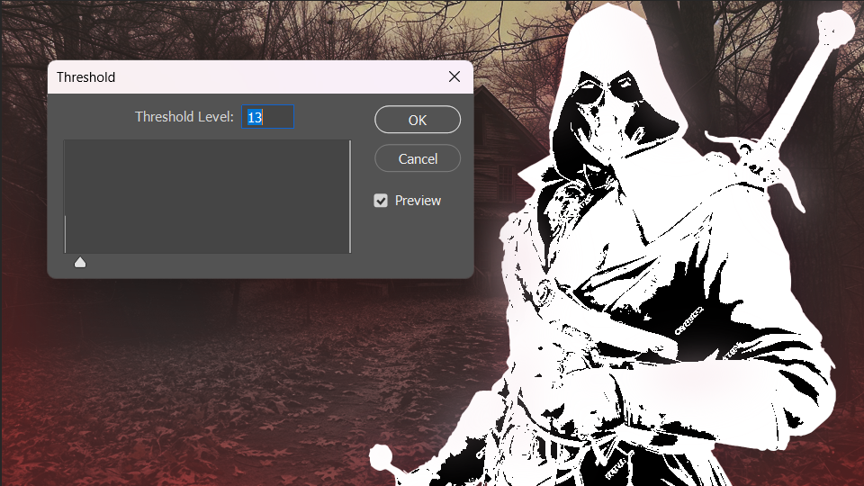 - Threshold Highlight layer: for the first new layer, apply a Threshold filter, or any other filter that provides strong contrast in a black-and-white image output. Try to extract all the highlighted areas.